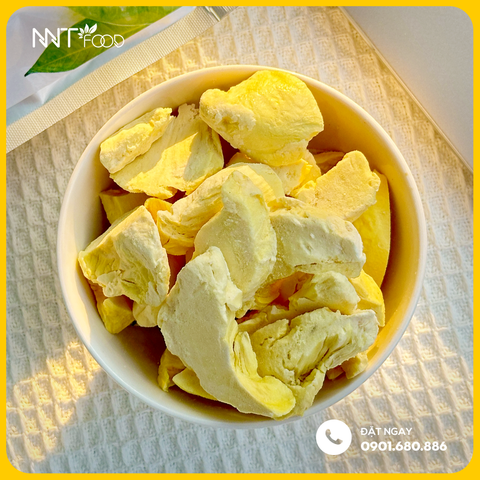 Sầu riêng Monthong sấy thăng hoa là sản phẩm cao cấp được chế biến từ những múi sầu riêng Monthong tuyển chọn, với cơm vàng, vị ngọt, béo thơm đặc trưng. Nhờ công nghệ sấy thăng hoa (freeze-dried) hiện đại, sầu riêng sau khi sấy vẫn giữ nguyên hương vị, kết cấu và giá trị dinh dưỡng, trở thành món ăn vặt giòn tan hấp dẫn, tiện lợi và an toàn.